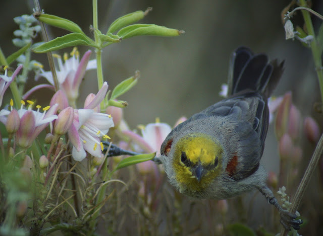 I first saw this bird in February around Patagonia Lake in southeast AZ and thought it was a Gray Flycatcher. Gray's and Dusky Flycatcher's look very similar, except that Grays have a slightly longer tail and the adults are a bit paler. I think I'll stick to Gray for this bird, but some nagging feeling says this could turn into a Dusky at any moment...or even something much, much more embarrassing.