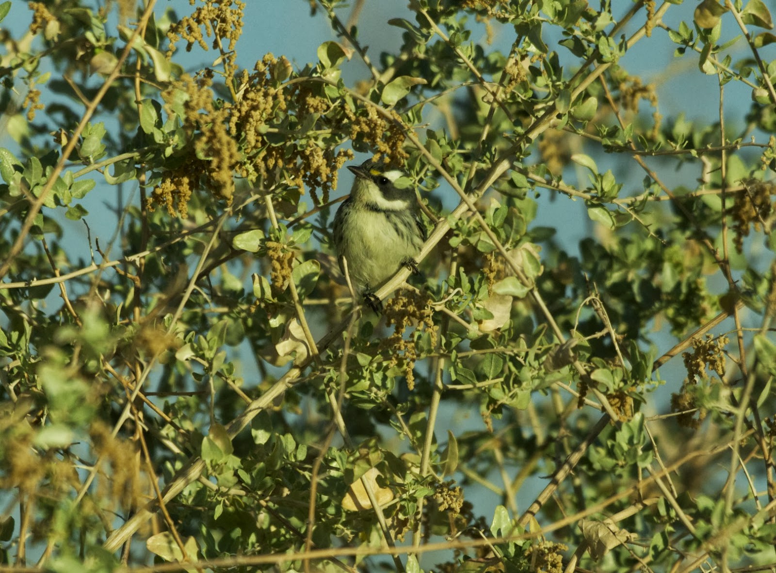 Of course, being Warblers, they're very fidgety and compulsive birds, but the Black-throated Grays, much like Orange-crowned Warblers, are more prone to foraging in scrub bushes and lower levels the canopies. This allows for better photo ops than many of their peers, even though the problem of interfering twigs is ever-present.
